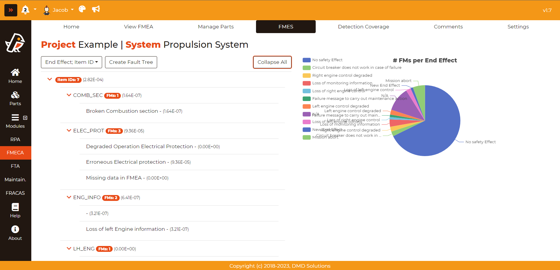 On the right side of the page, the user can see a chart with the Failure Modes contributing to each of the End Effects on the system.