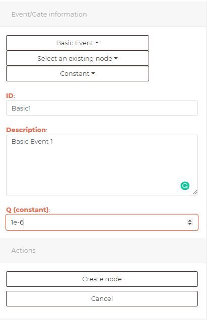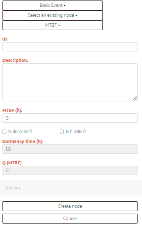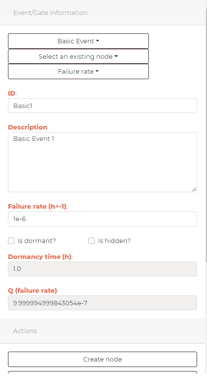 The Unavailability of the top gate is calculated taking the probability of each primary event and applying the logic of the gates. The primary events have different ways to enter the probability: Constant, Failure Rate and MTBF. Moreover, the primary events can be also dormant or hidden.