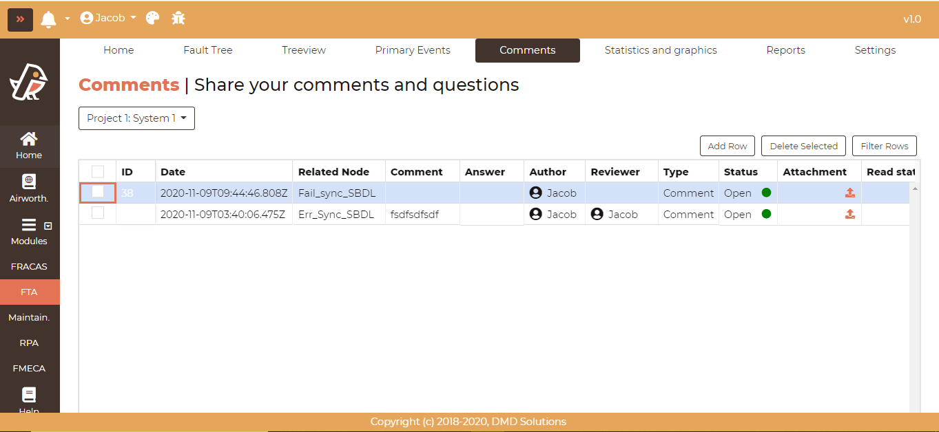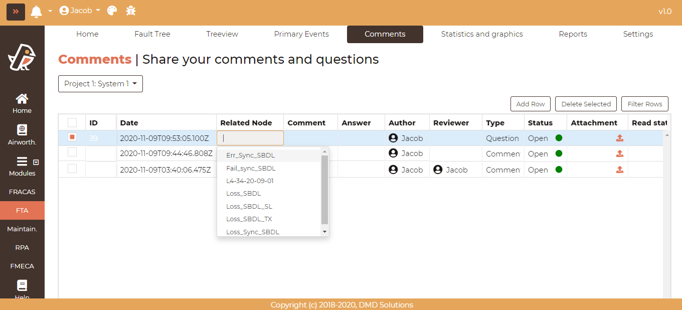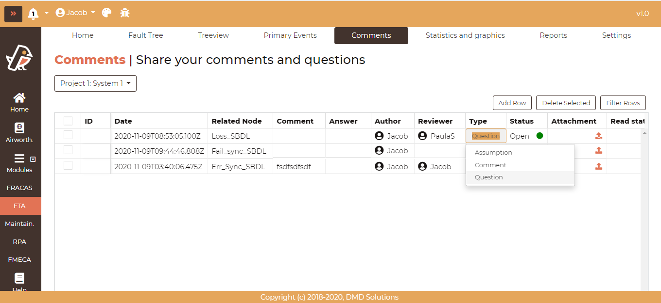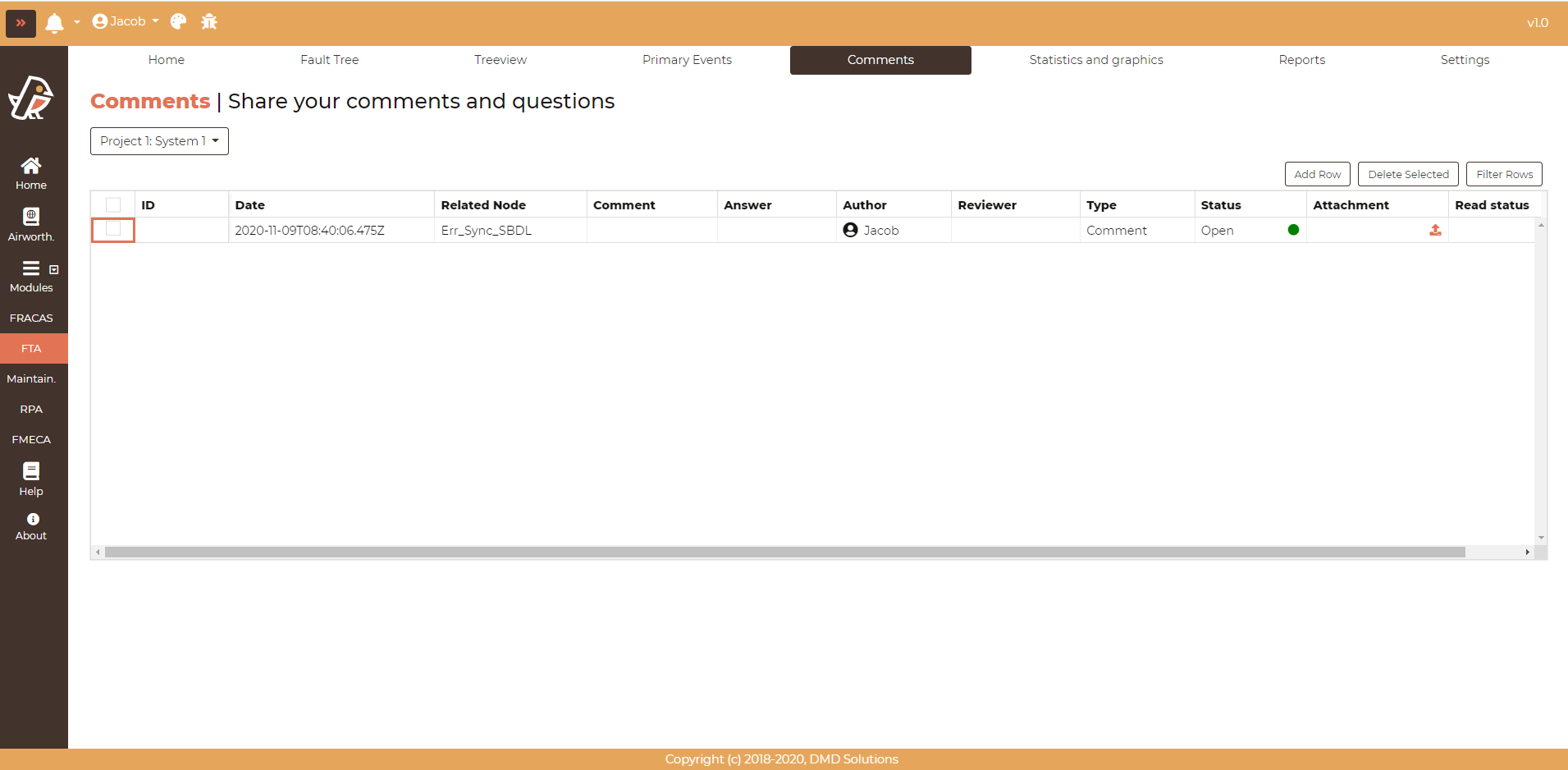 The Comments page allows to the different users to make comments on each node of the FTs.