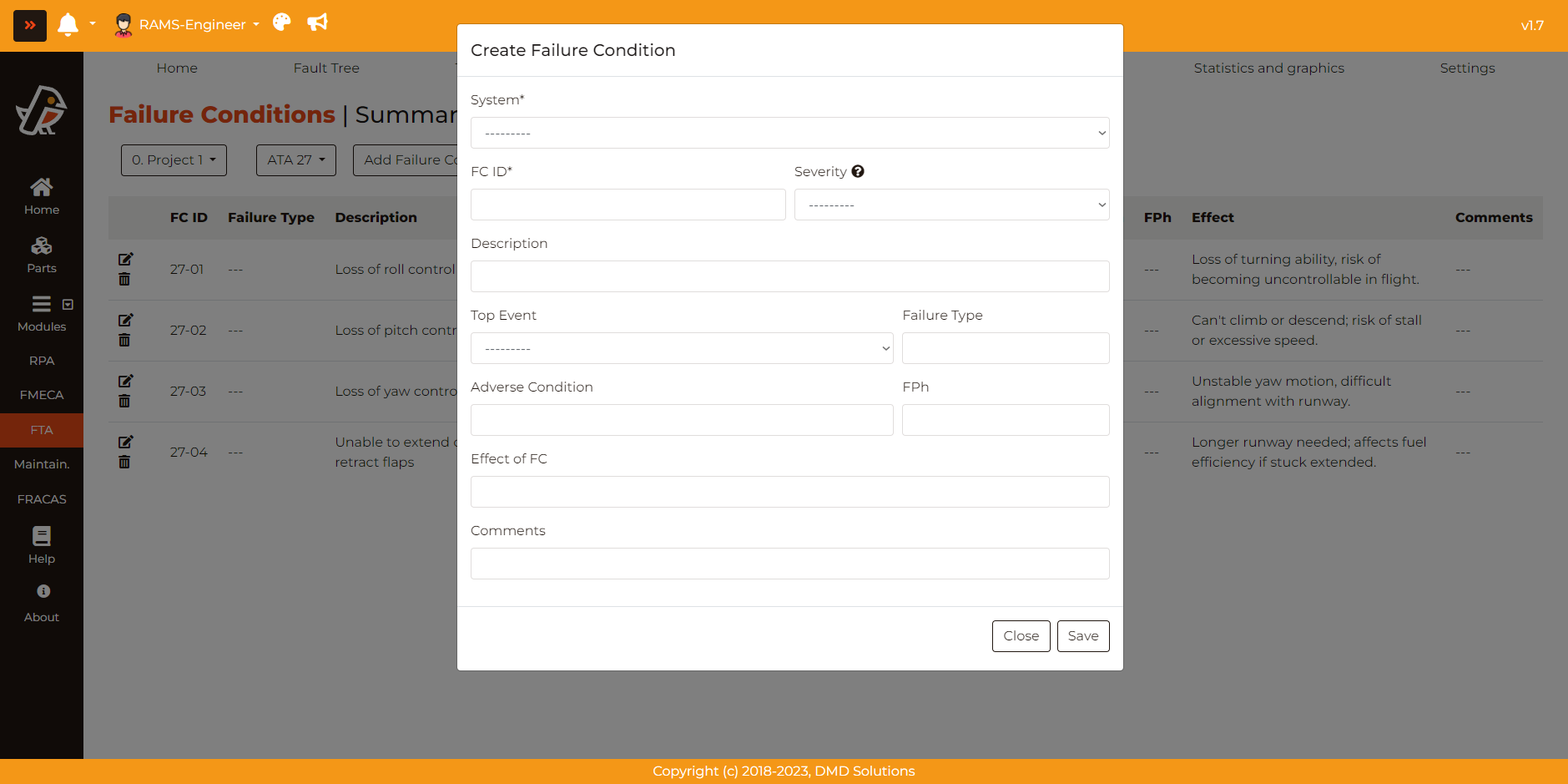 In this form, the user can specify all the details regarding a new failure condition: