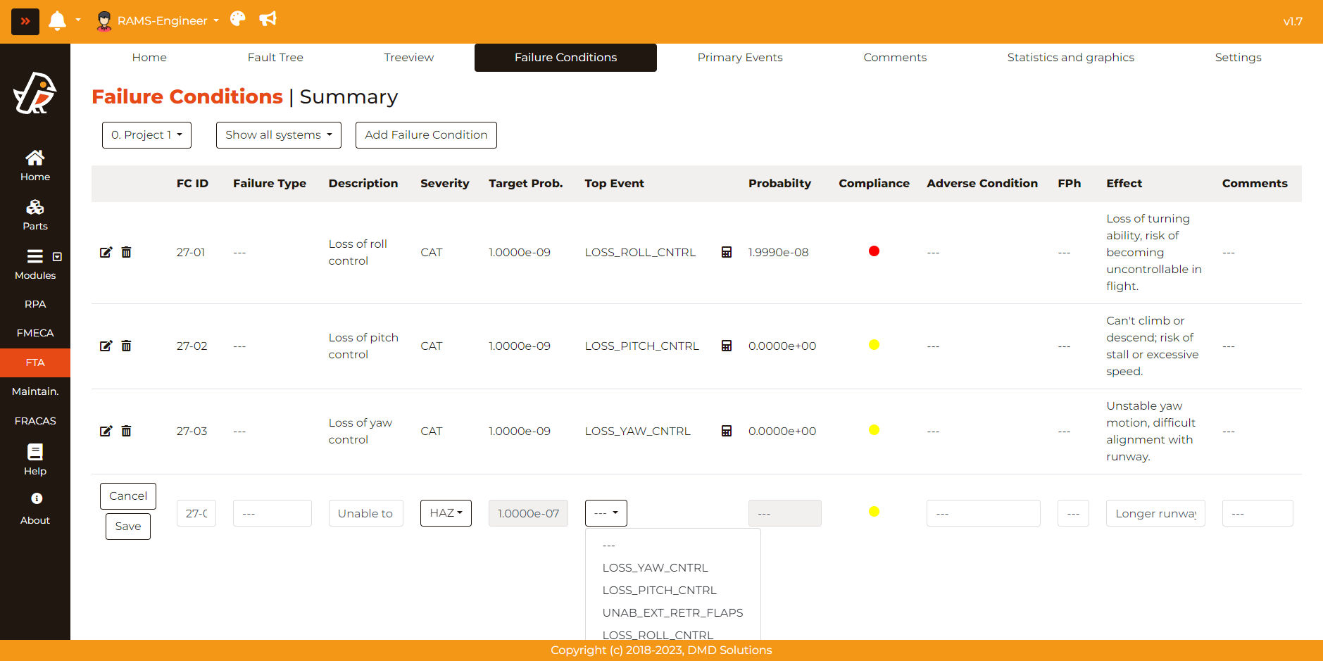 Once created, the Failure Conditions can be modified: all the previous fields, the associated Top Gate or the severity.