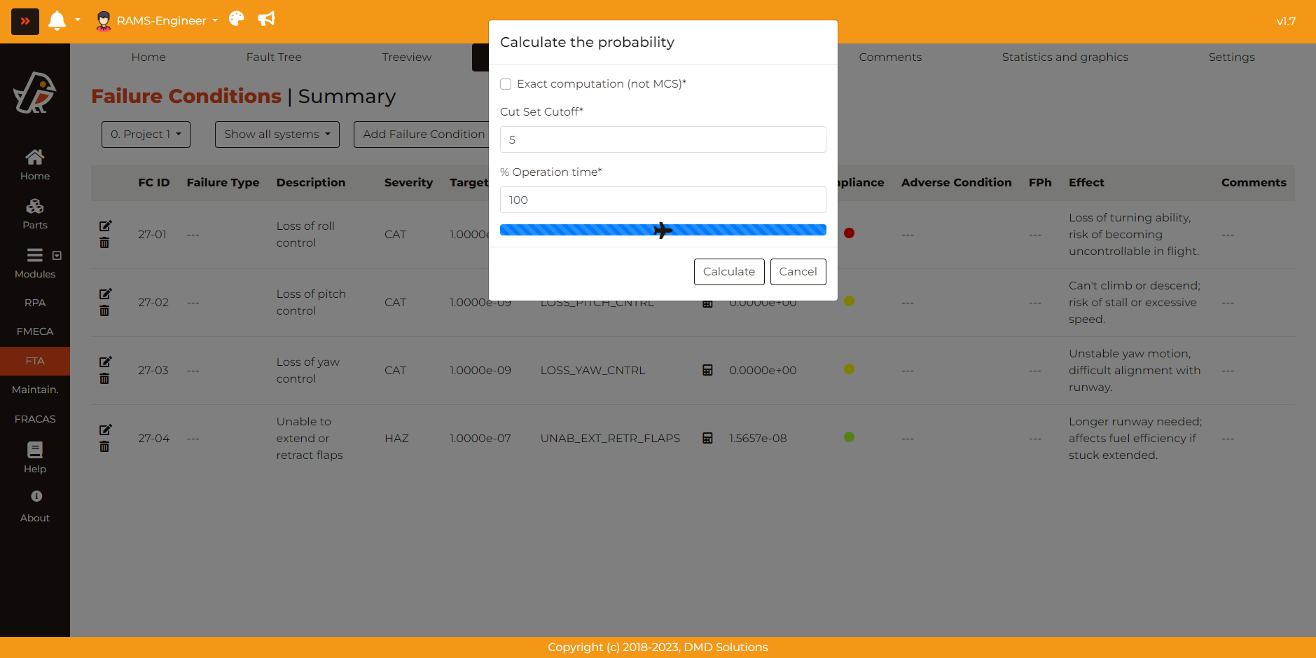 Also, once attached the Top Gate, there is a button in the table which allows to compute the Fault Tree without going to the diagram.